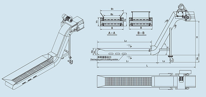 ●TLP型係列(liè)提升式鏈板排屑機,按結構尺寸分為(ⅠⅡⅢ)三種基(jī)本(běn)類型,I型外形美觀、緊湊適用於小型主機,ⅡⅢ型結構更加牢固可靠適用於大中型主(zhǔ)機及生產線上的運距離輸送。