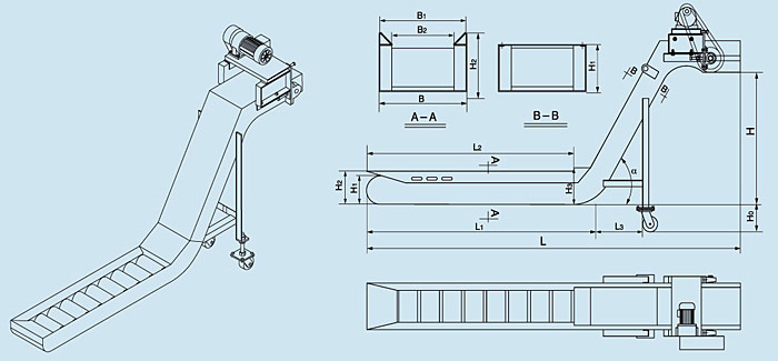 CGP型磁性刮板式排屑機外形尺寸圖(tú)