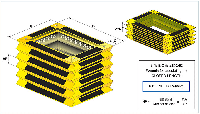 行程=打開長度 -閉合長度x=折疊高度