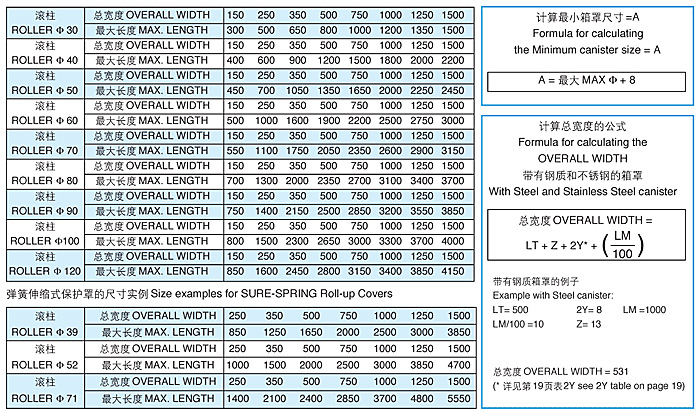 推薦的(de)尺(chǐ)寸:這些(xiē)表格根(gēn)據總寬度給出了最大的板的長度。在最大速度40米/分(fèn)鍾的條件下(xià),這些(xiē)值都是保證(zhèng)值。對(duì)更高的速度以(yǐ)及那些沒有包(bāo)括在這些表中的值,請與我們的工程設計部門聯係。所有(yǒu)帶或不帶箱罩的伸縮式保護罩都可以按訂單要求製作(zuò)。