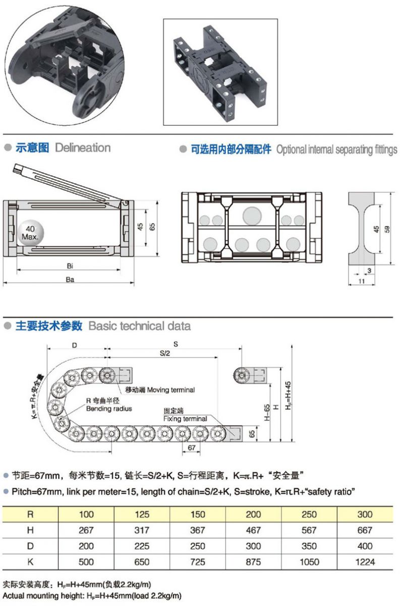 長度:15pitch/m內高(gāo):45mm