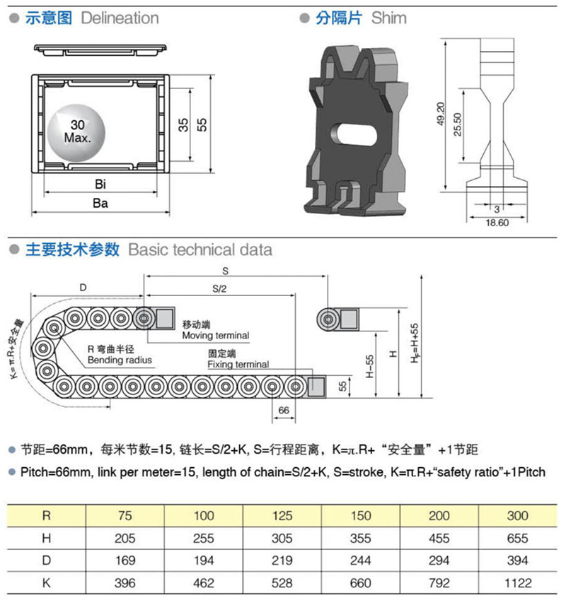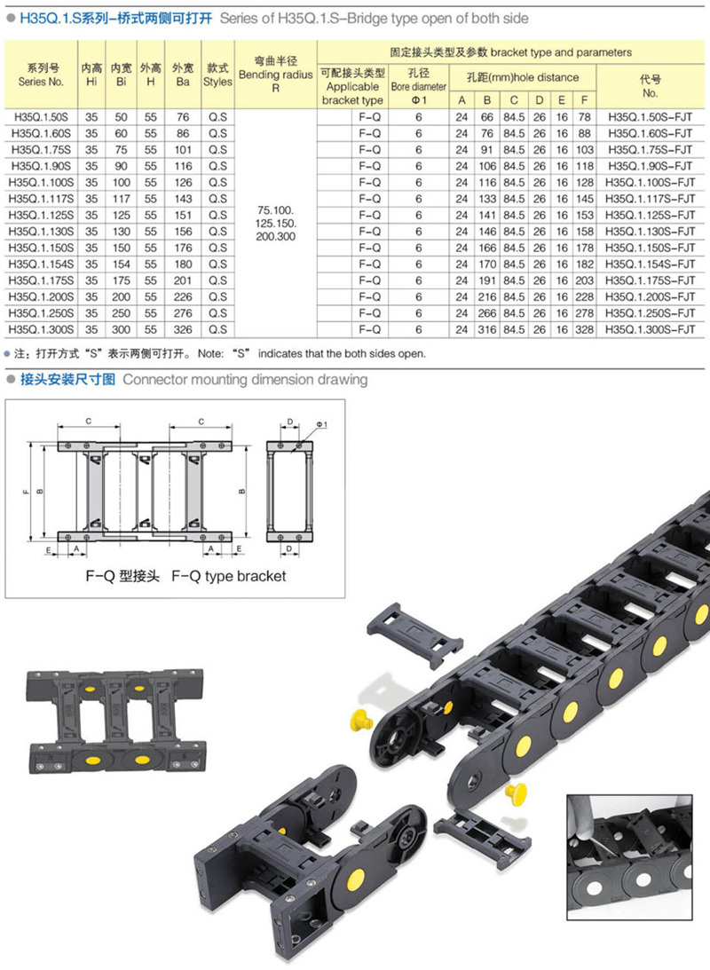 彎曲半(bàn)徑: 55 75 100 125 150 200 300