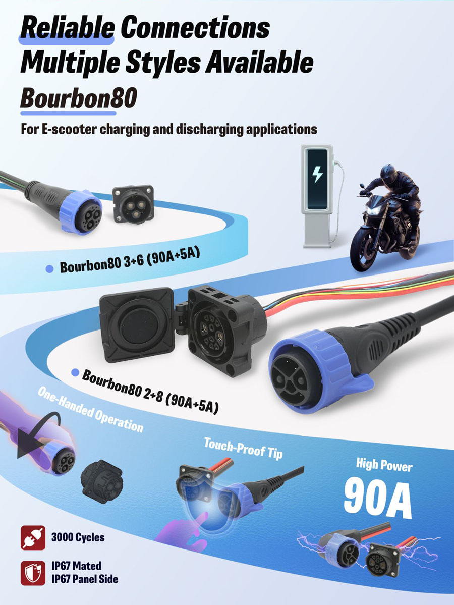 在快速(sù)發展的(de)電動摩托(tuō)車(chē)世界中,方便、可靠和創(chuàng)新是至高無上的,Bourbon80連接器成為每個電動(dòng)摩托車愛好者的終極伴侶。