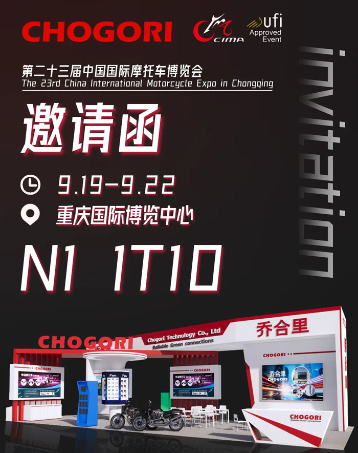 2025年9月19-22日,第(dì)23屆中(zhōng)國國際摩托車博覽會將在重慶國際博覽中心(xīn)盛大開幕!草莓污视频(lǐ)誠邀您蒞臨【N1 1T10】展位,共探行業(yè)新機遇。